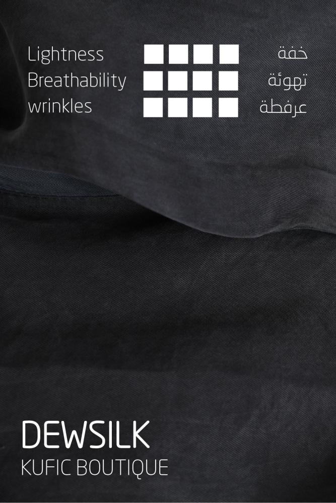 العباية من قماش الحرير المغسول الذي يتميز بجماله وخفته، مما يظهر طايح و هو الخيار مثالي للمرأة الباحثة عن توازن بين الأناقة والراحة، العباية مناسبة لاجواء الصيف لانها تعطي إحساسا بالبرودة مصممة بقصة واسعة ومفتوحة تحاكي تصميم البشت السعودي، و بأكمام ضيقة، انيقة في اللبس. جمال الطرحة بتفاصيلها تجعل العباية متناسقة.