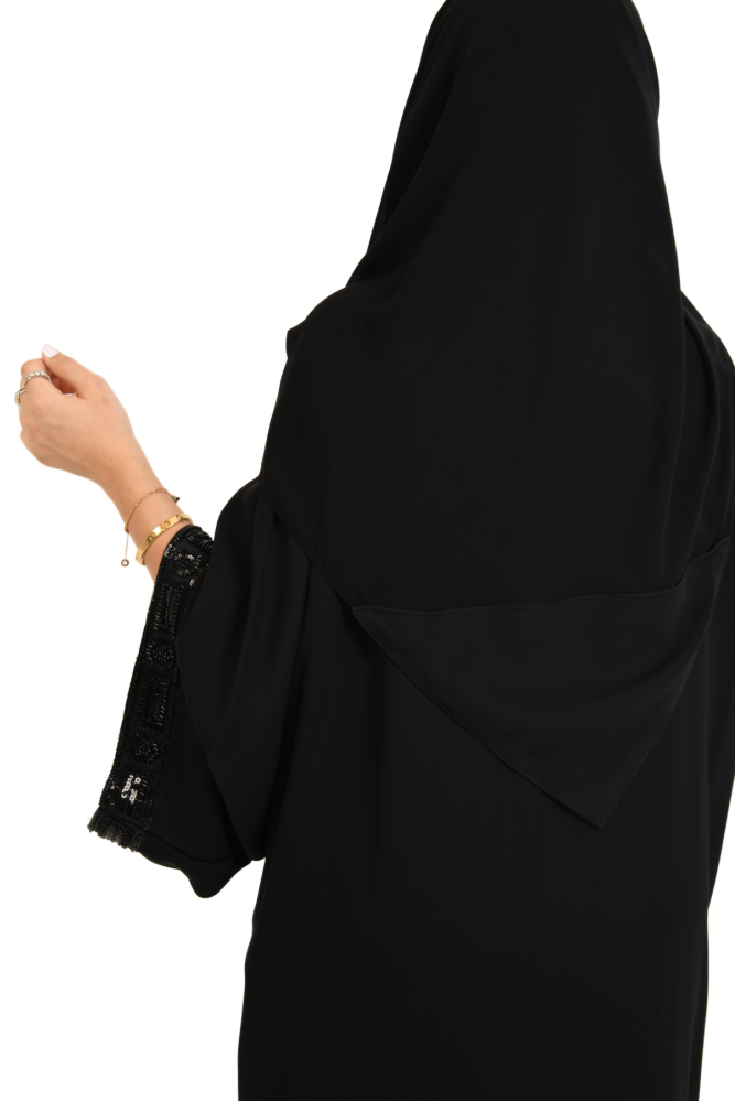 العباية من قماش الحرير الذي يتميز بنعومته و خفته، هو الخيار مثالي للمرأة الباحثة عن توازن بين الأناقة والراحة، العباية مناسبة لاجواء الصيف لانها تعطي إحساسا بالبرودة مصممة بقصة واسعة ومفتوحة تحاكي تصميم البشت السعودي، و بأكمام واسعة، انيقة في اللبس. جمال الطرحة بتفاصيلها تجعل العباية متناسقة.