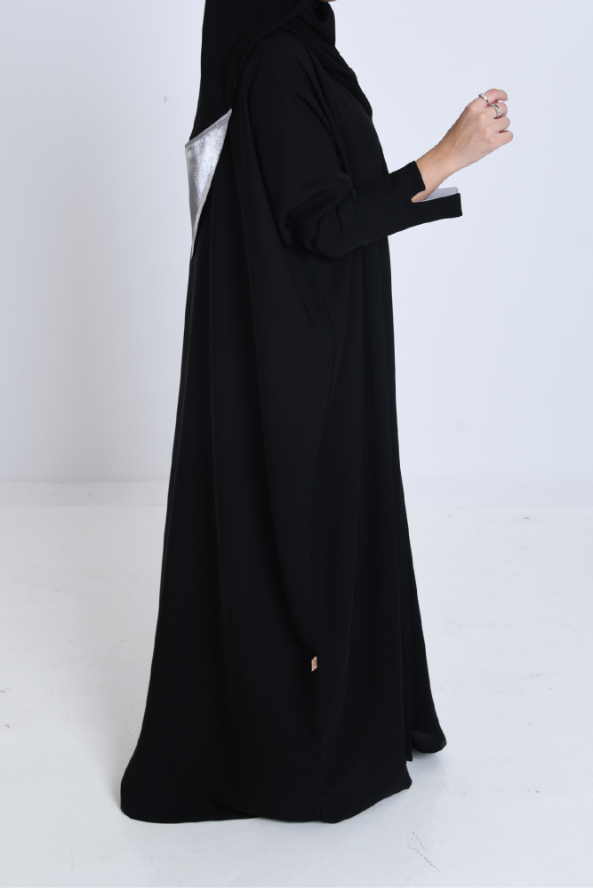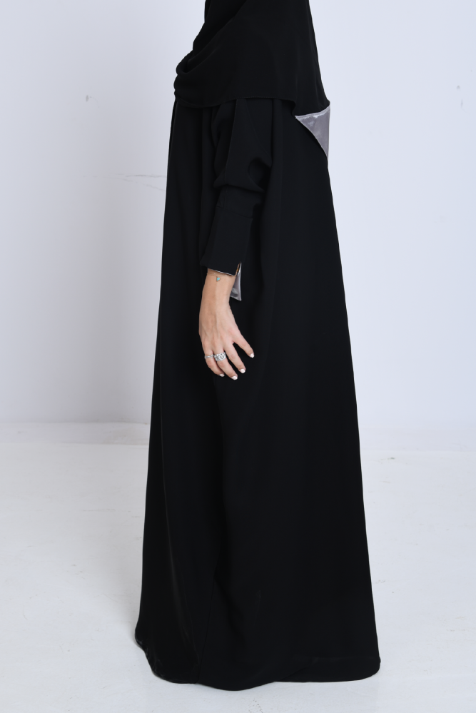 العباية من قماش الكريب الخفيف الذي يتميز بجماله وخفته، مما يظهر طايح ونصف واقف و هو الخيار مثالي للمرأة الباحثة عن توازن بين الأناقة والراحة، العباية مناسبة لاجواء الصيف لانها تعطي إحساسا بالبرودة مصممة بقصة واسعة ومفتوحة تحاكي تصميم البشت السعودي، و بأكمام ضيقة، انيقة في اللبس. جمال الطرحة بتفاصيلها تجعل العباية متناسقة.