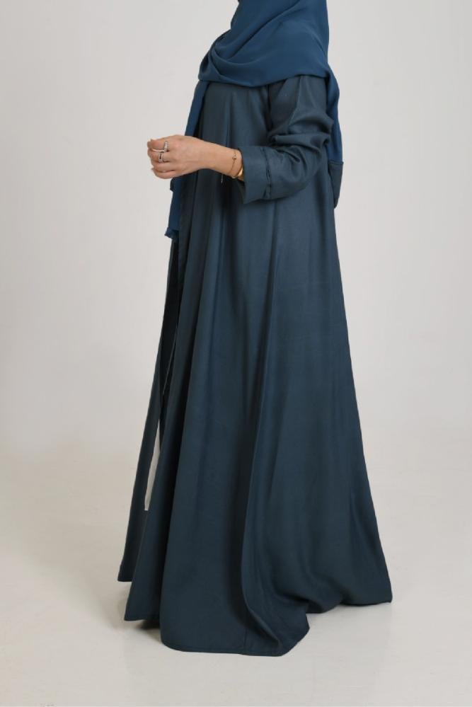 العباية من قماش اللينين الناعم، تتميز بخيوطها وخفتها. هذا النوع من اللينين يعتبر طايح، وهو الخيار المناسب للاستخدام اليومي لأنه يساعد على الراحة ويتناسب مع أجواء المملكة. القصة نص كلوش، والحركة الناعمة من الخلف تعطي العباية تصميمًا راقيًا ومميزًا. والأكمام الضيقة التي تتسفطت تصنع توازنًا يجعلها مناسبة للمناسبات والدوامات. واخيرا جمال الطرحة يجعل العباية متناسقة بالكامل.