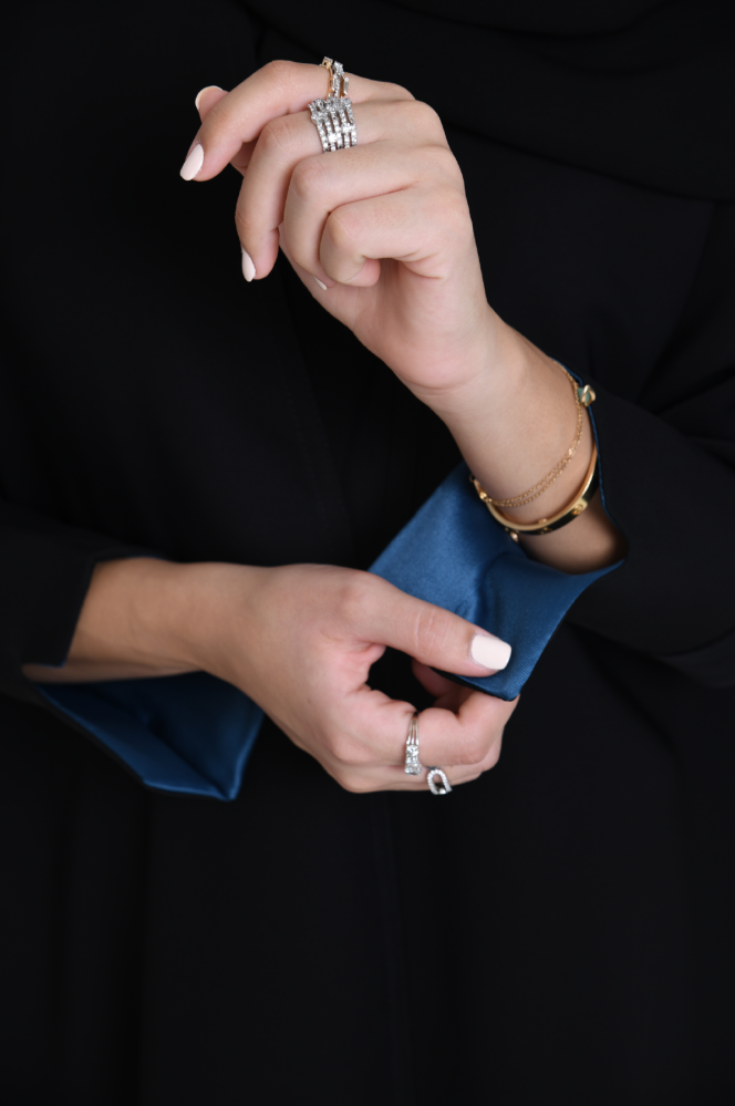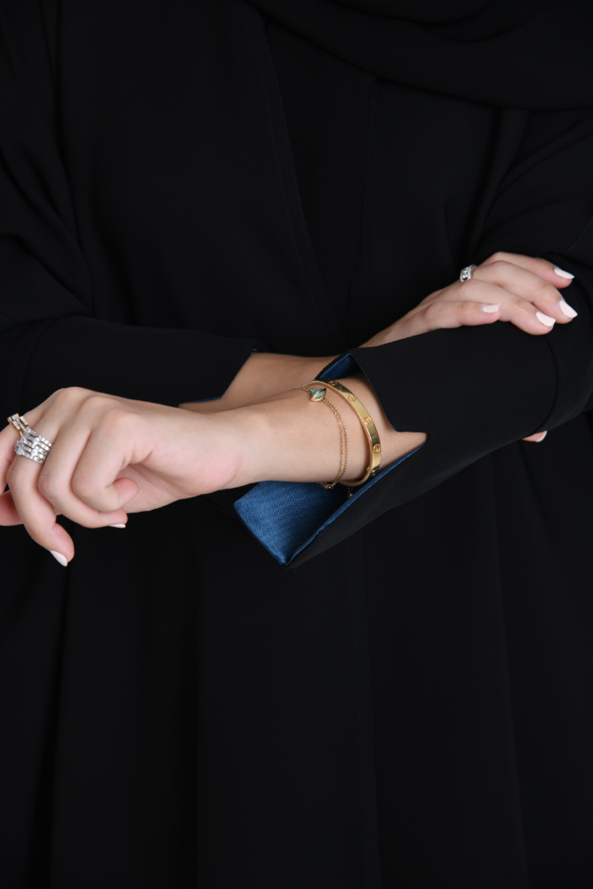 العباية من قماش الكريب الخفيف الذي يتميز بجماله وخفته، مما يظهر طايح ونصف واقف و هو الخيار مثالي للمرأة الباحثة عن توازن بين الأناقة والراحة، العباية مناسبة لاجواء الصيف لانها تعطي إحساسا بالبرودة مصممة بقصة واسعة ومفتوحة تحاكي تصميم البشت السعودي، و بأكمام ضيقة، انيقة في اللبس. جمال الطرحة بتفاصيلها تجعل العباية متناسقة.